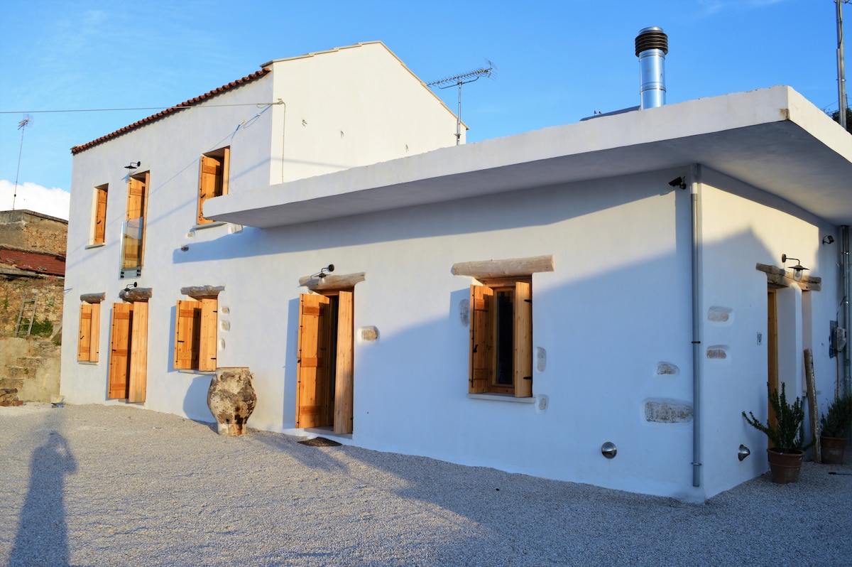 The house is located in the village of Modi, atop a hill, a few minutes away from the sea and the tourist amenities of Platania and 15 minutes away from Chania . You can experience the life of a unspoiled Cretan village and have a great view of nature, the fields of olive and orange trees while you swim at the pool. The house remains traditional, using natural materials such as stone and wood, while providing all the modern comforts.