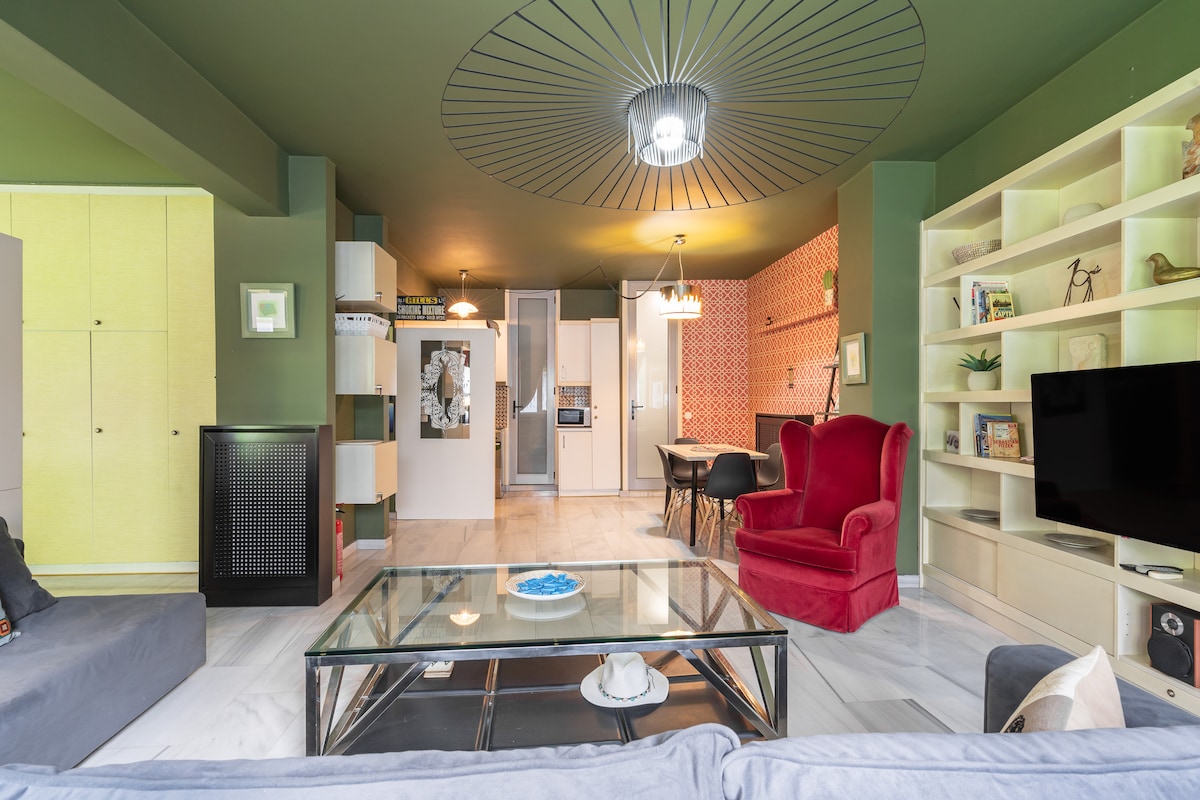 A stylish apartment in Athens, owned and designed by Neta Dror, a designer and artist who has infused the space with her personal vision. This apartment has a unique space that combines old and new elements. The apartment has a large living room with a comfortable sofa, a dining table and a kitchen with all the amenities. The bedroom has a comfortable double bed and a hidden bathroom that surprises and delights. This apartment is more than just a place to sleep, it is a place to experience.