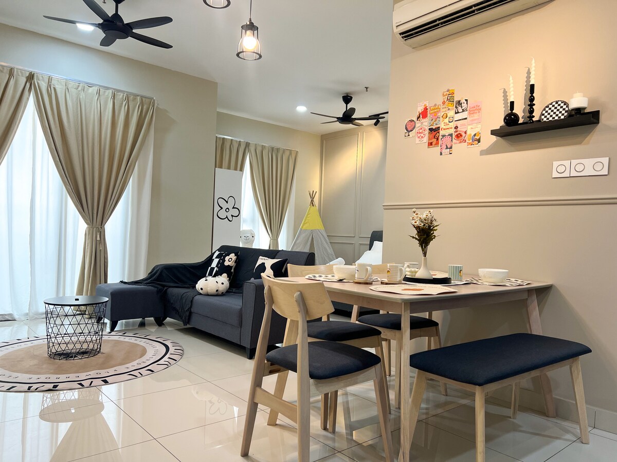 Impresionantes vistas desde un apartamento de gran altura y céntrico en Puchong Setiawalk. Puedes recargarte con una buena noche de sueño con ropa de cama de hotel de lujo o explorar la vista de la ciudad con un telescopio. En el interior hay una cocina totalmente equipada con horno profesional y nevera. Hay un escritorio apto para portátiles en ambos dormitorios para teletrabajar. Era homestay también está cerca de LRT, cine, restaurantes y bares. ¡También puedes pedir al anfitrión paquetes divertidos de viaje de un día a Genting!