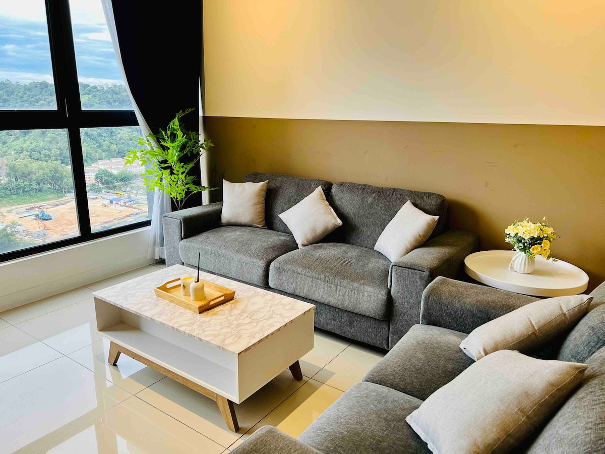 ¡Te damos la bienvenida a Revo Bukit Jalil! ¡Un moderno apartamento estudio con un diseño acogedor! * Actualizado a la combinación de lavadora y secadora 2 en 1. - 1 cama tamaño queen. - 1 aparcamiento gratuito. - Piscina en la azotea. - Justo al lado de Pavilion Bukit Jalil, a 30 segundos a pie de la entrada del pabellón. - Cerca del estadio Bukit Jalil (perfecto para que te quedes después de ver un concierto u otros eventos). - Internet de alta velocidad. - Netflix disponible. - Sábanas blancas. - Agua de ducha caliente de alta presión.
