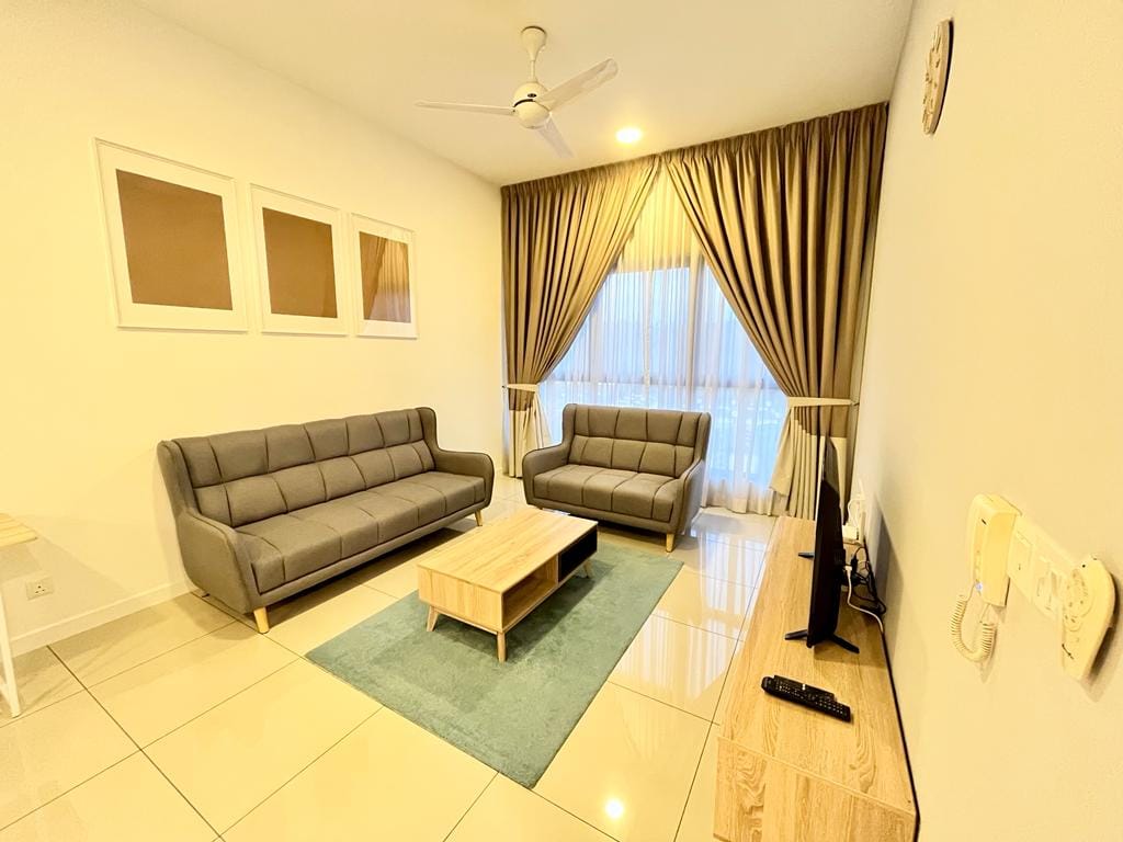 Nuestra elegante y ecológica suite de 1 dormitorio con vistas al jardín en Kanvas SOHO es perfecta para parejas, escalas o escapadas de fin de semana. A solo 25 km de KLIA/KLIA2 y a poca distancia a pie de Tapak Food Truck, D'Pulze Mall, Burger King, KK Mart, cafeterías y más. 🛏️ Acogedora cama tamaño queen y sofá cama 🌿 Hermosas vistas de Putrajaya 📶 Wifi de alta velocidad 🎬 Netflix 🏊♀️ Piscina infinita. Acceso al🌇 Sky Lounge y al gimnasio 🅿️ Aparcamiento gratuito 🚗 Fácil acceso a la autopista Disfruta de una estancia relajante con comodidades modernas, naturaleza y la comodidad de la ciudad.