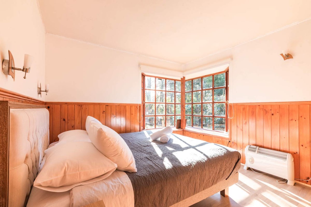 Cabaña de lujo tipo loft con finas terminaciones, inserta en un bosque centenario de arboles nativos. Baño en suite, walking closet, cocina integrada completamente equipada. Combustión a leña, estufa toyotomi. Gran terraza, parrilla, mesa en el bosque para asados, piscina, estacionamiento privado, smart tv, netflix, tv cable y wifi fibra optica.