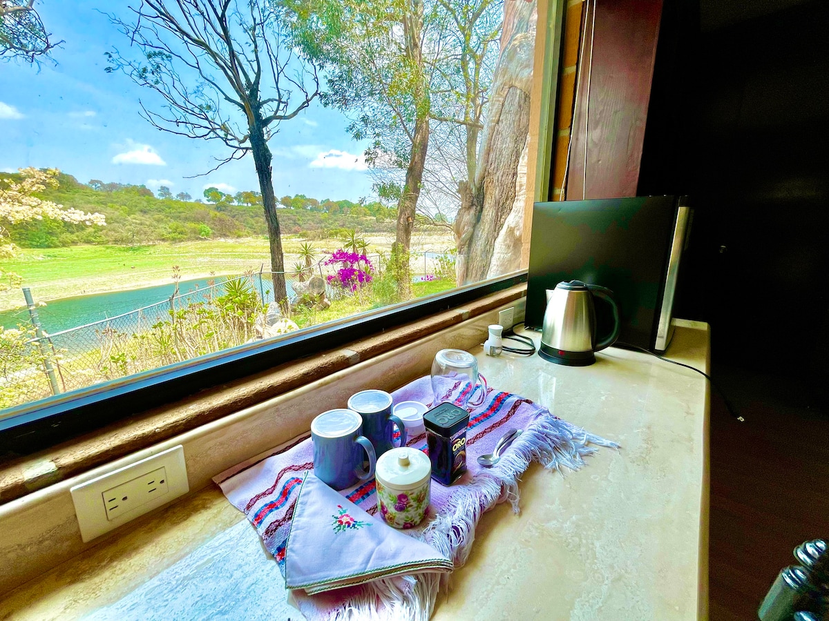 Es nuestra cabaña hecha con mucho amor, ubicada entre CDMX y Puebla sobre el Paso de Cortés. Es un lugar completamente remoto, para personas que quieren desconectarse de la tecnología y conectar con la naturaleza. La cabaña es OFF-GRID: sin señal de teléfono, con energía solar, y a la cual se llega por un camino de terracería. Se encuentra a 3700msnm con aire fresco y un clima frío-templado. Es un lugar para relajarse y disfrutar de las vistas del volcán y del bosque.