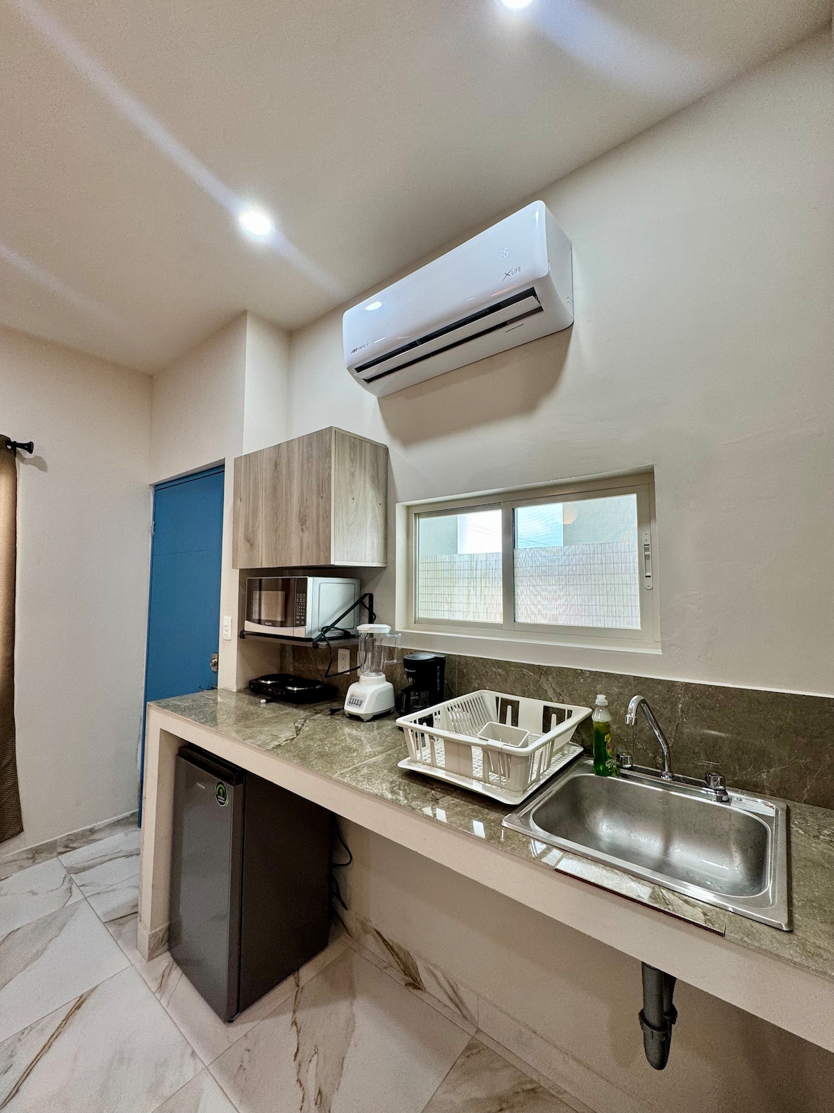 Pequeño departamento vintage con estilo y decoración antiguo muy acogedor en planta alta con acceso independiente ideal para vivir una gran experiencia. El departamento se encuentra a media cuadra de la Ave Hidalgo (Ave principal de Tampico que cruza la ciudad) en un zona segura y tranquila muy cerca de áreas turísticas. Ideal para 3 personas, 2 compartiendo cama matrimonial y 1 en cama individual dentro de la misma habitación, aire acondicionado mini-split en la habitación.