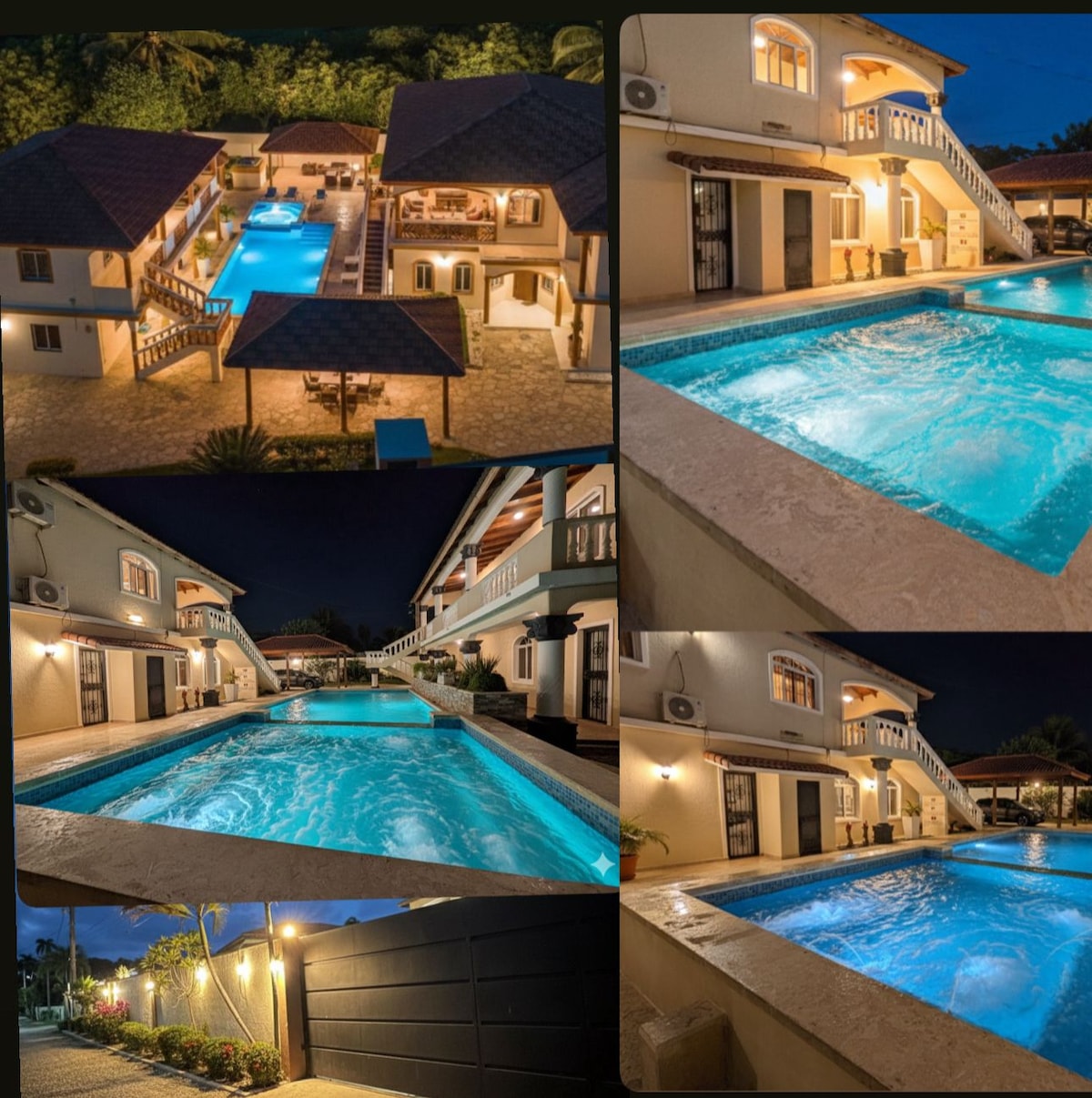 Relájate con toda la familia en este alojamiento donde la tranquilidad se respira. Experimenta una hospitalidad sin igual con nosotros, una pareja apasionada comprometida a proporcionar unas vacaciones de primera clase en nuestra recién actualizada Villa Peluchini. Bienvenido a Villa Peluchini, una joya lujosa en el encantador Sosúa. Sumérgete en el paraíso con nuestra villa de diseño personalizado de 5 habitaciones y 4 baños, que cuenta con una espectacular piscina privada y jacuzzi.