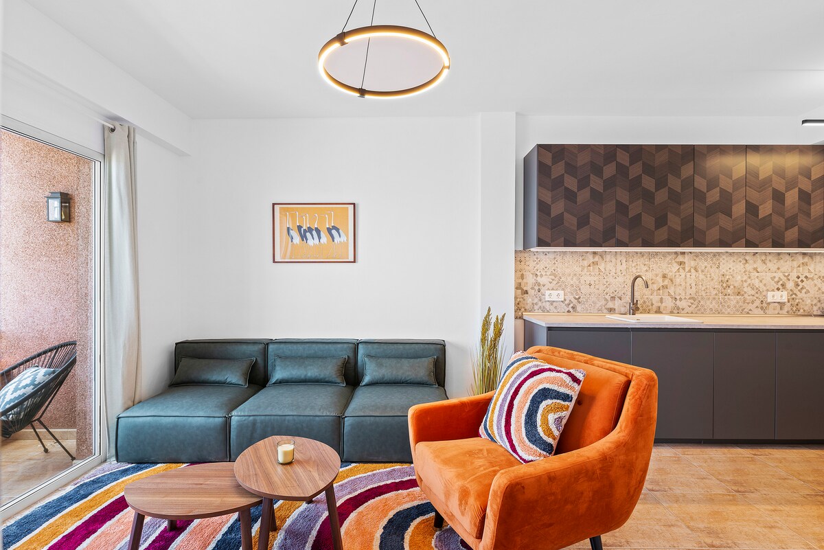 Bright studio just a short walk from Playa de la Arena, with open views of the Atlantic Ocean and La Gomera. The open-plan space features a queen-size bed, air conditioning, and a small private terrace, perfect for morning coffee or sunset drinks. Set slightly away from the front line, it offers a quieter stay while remaining close to the beach, restaurants, and shops. Free parking included. Ideal for couples or solo travellers looking to relax and enjoy Tenerife’s sunsets.