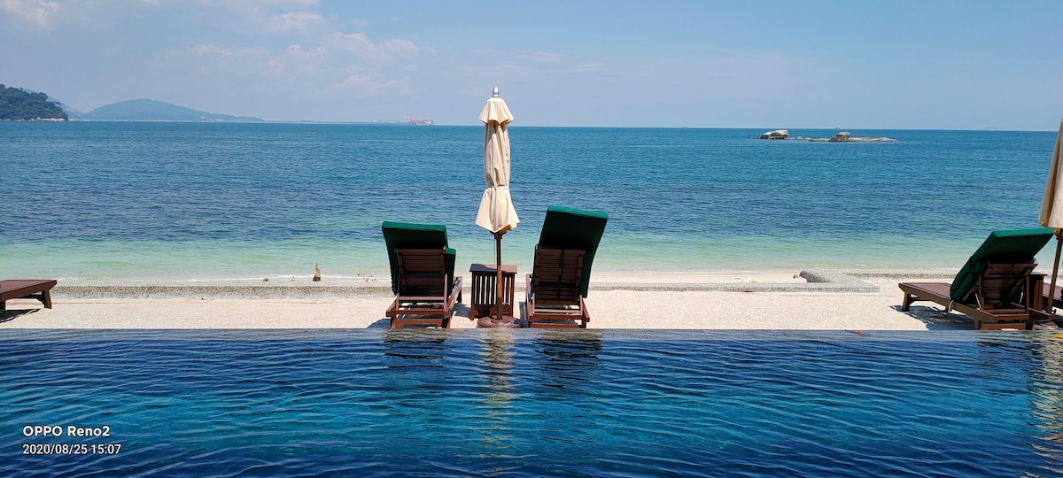 ¡Te damos la bienvenida a este acogedor estudio en la isla de Pangkor! Perfecto para familias o grupos de hasta 4 personas, este espacioso estudio cuenta con 2 camas tamaño queen y una ubicación privilegiada con vistas a la piscina. Disfruta de un rápido acceso a la playa, los restaurantes locales y las tiendas, todo a pocos pasos. Ubicación privilegiada: - A 2 minutos a pie de la playa. - A 500 metros de restaurantes de mariscos, puestos de comida malaya, supermercados y tiendas libres de impuestos. - A 5 minutos en coche de la terminal de ferris.