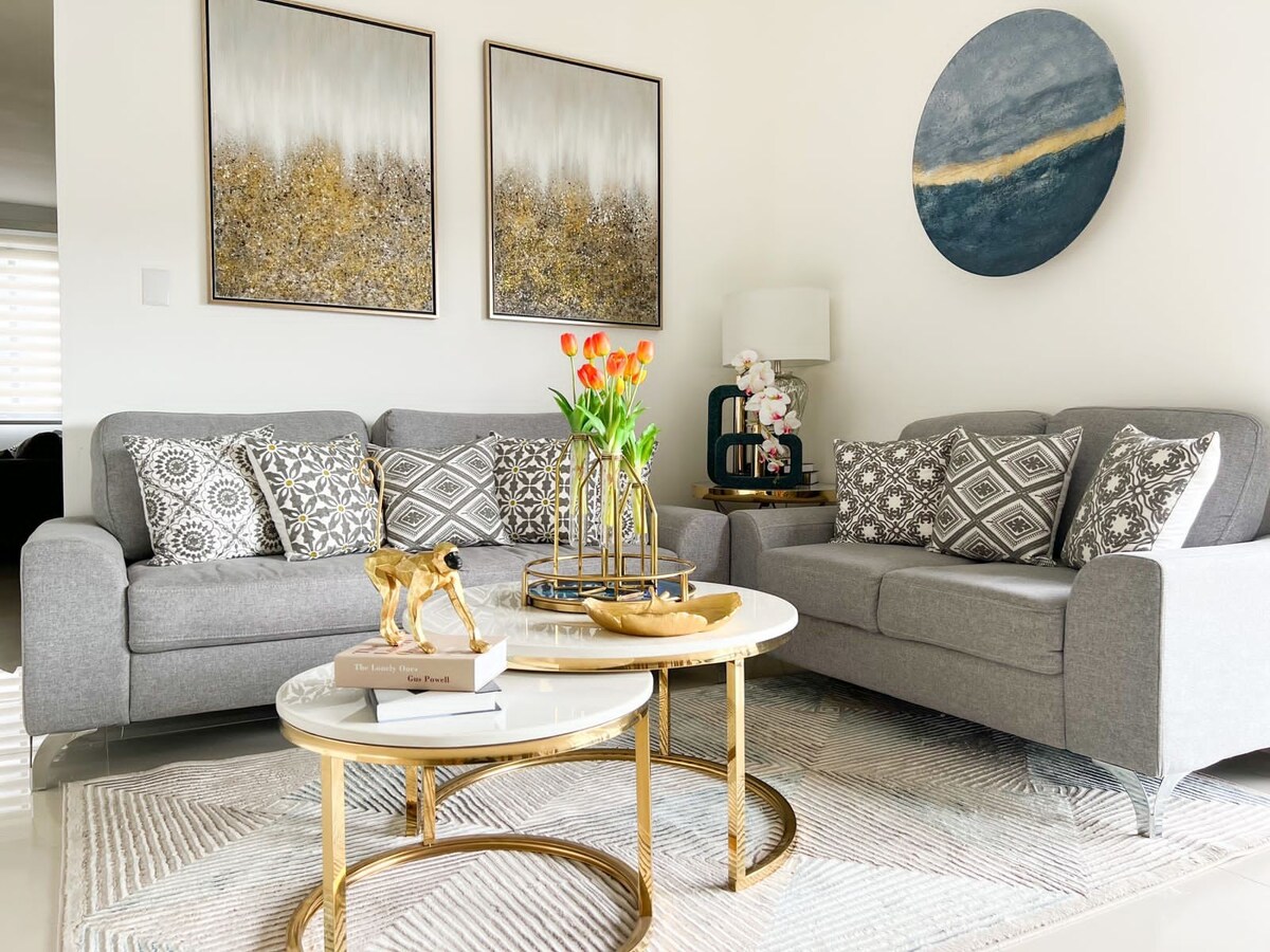 Este nuevo apartamento es el alojamiento perfecto para una escapada en familia y con amigos. Se encuentra a 10 minutos del aeropuerto de Santiago, lleno de comodidades y totalmente amueblado. Hay 3,5 baños, 3 dormitorios con aire acondicionado y un dormitorio de invitados con una cama individual, ventilador y su propio baño. Cocina totalmente equipada, dos salas de estar, aire acondicionado, dos televisores inteligentes de 50 pulgadas, altavoces Bluetooth y dos plazas de aparcamiento. También puedes disfrutar de los alrededores del complejo, como el parque infantil, la piscina, la sala de eventos, el lago y la cancha deportiva.