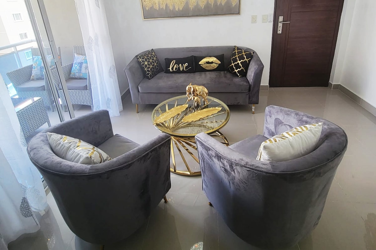 ¡Relájate con toda la familia en este Hermoso Apartamento en el 1er Piso! Incluye: *3 Habitaciones con sus Aires Acondicionados *Sala con Juego de Mueble L y Smart Tv * 2 Televisores * Cocina Equipada con Nevera, Estufa y todos los utensilios para Cocinar * Juego de Comedor para 6 Personas * Área de Lavado con su Lavadora *Terraza con Comedor, Mesa de Dominó y BBQ * Parqueo para 2 Vehículos *Internet, Wifi y Tv con Cable. El Apartamento se encuentra a solo 3 minutos del Aeropuerto Cibao.