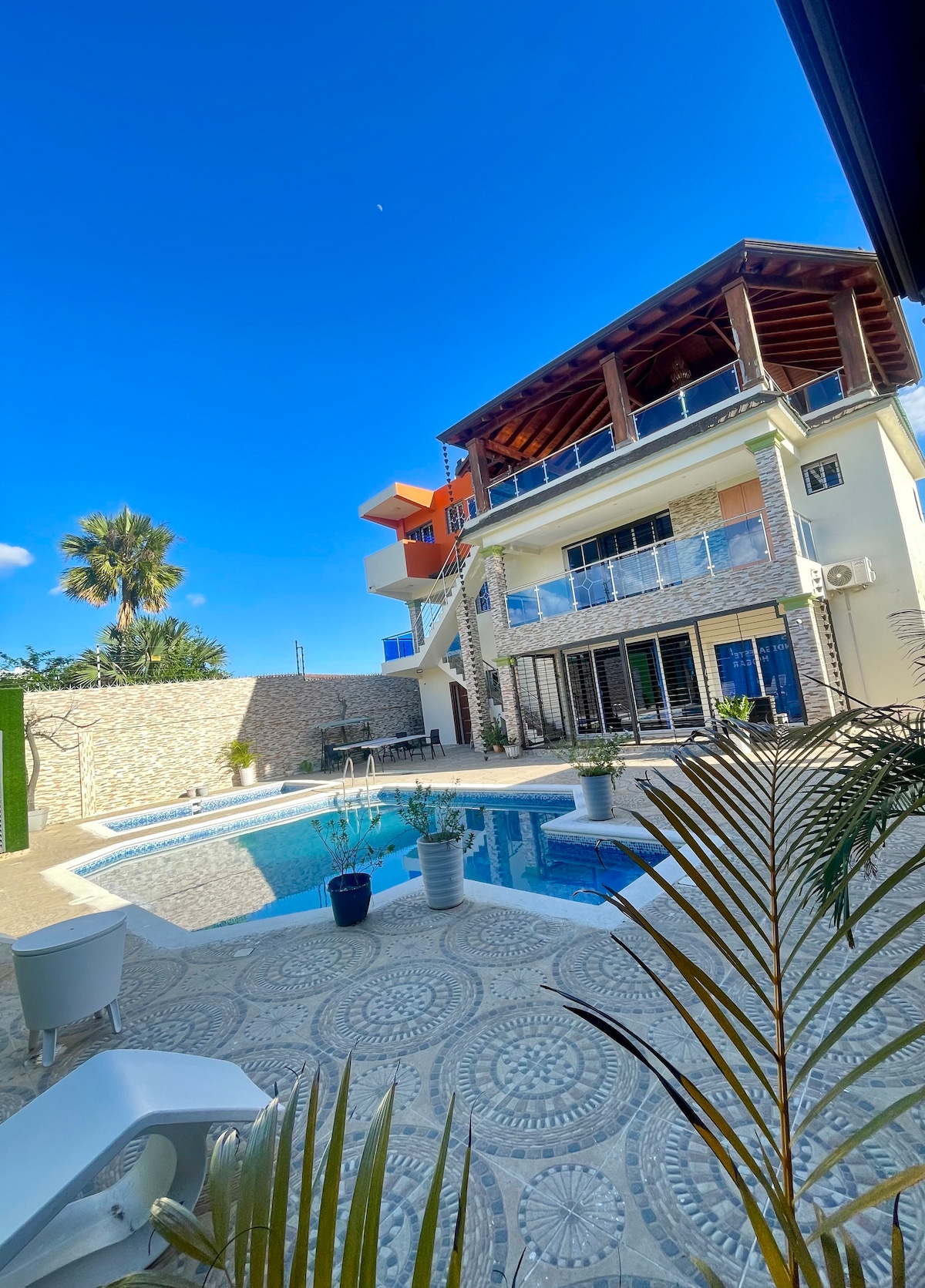Disfruta de una estancia Agradable y segura en esta amplia casa, ideal para familias y grupos de hasta 6 personas. Lo que ofrece el alojamiento: • 2 habitaciones, 3 camas • Wifi • 2 salas amplias para compartir • Comedor espacioso para disfrutar de tus comidas • Área de lavandería • Jacuzzi privado • Terraza con parrilla perfecta para reuniones Ubicación privilegiada: A solo 7 minutos del aeropuerto, 18 minutos del centro de Santiago, 20 minutos de la vega y 2 minutos del cruce de Moca.