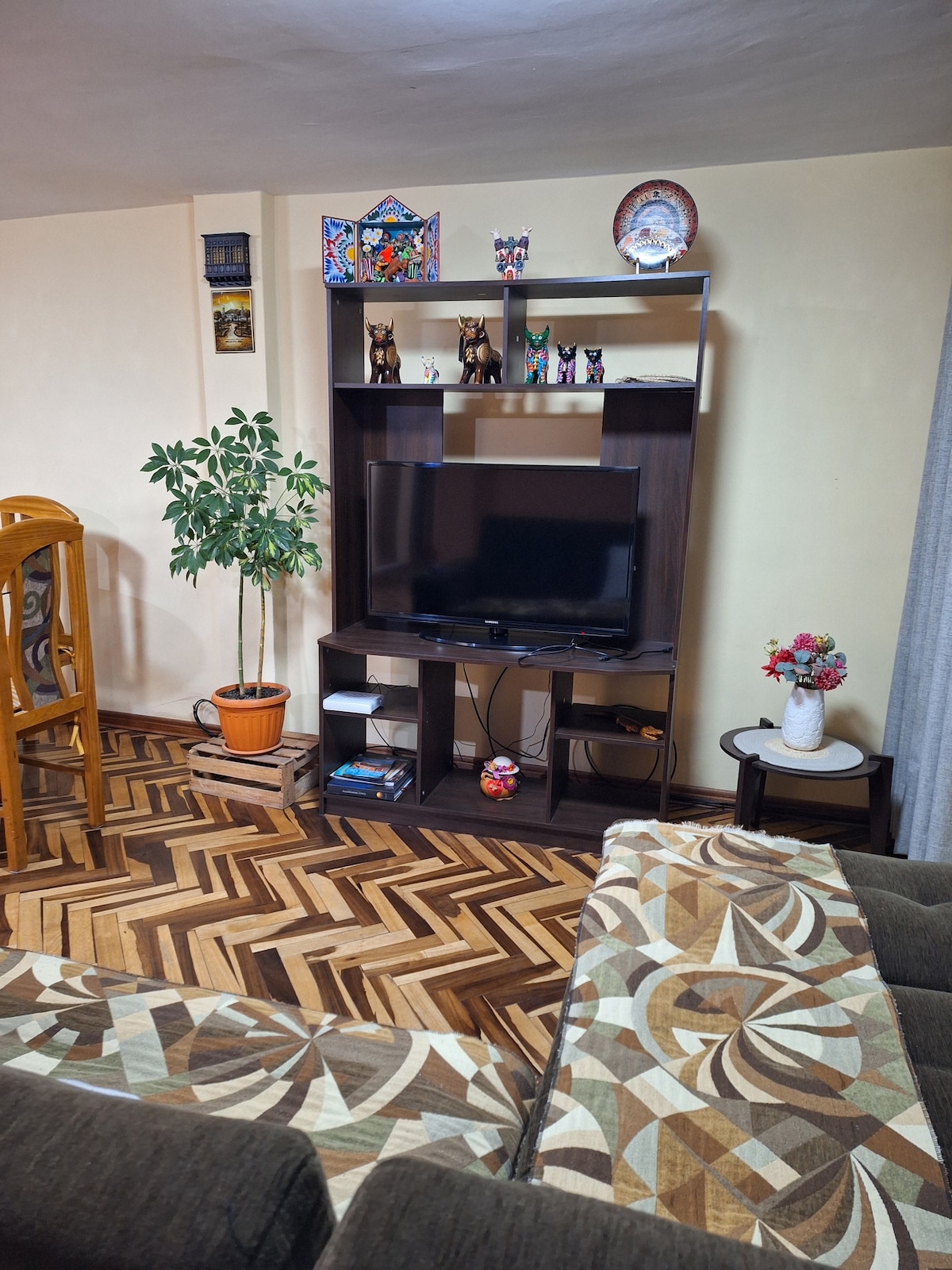 ¡Bienvenidos! Disfruta de una estadía cómoda en este acogedor departamento, iluminado y cálido, ideal para familias y viajeros. Se ubica cerca a los dos terminales terrestres de la ciudad y en la avenida donde pasa la Candelaria 😊 Cuenta con: ✔ Wifi ✔ TV ✔ Agua caliente ✔ Cocina equipada para preparar tus comidas 📌Secadora de pelo 📌Plancha de ropa ✔Calefacción ✔️Sofá cama para 1 persona más😊 Además, hay una cochera de pago cerca para tu comodidad. ¡Reserva ahora! Los esperamos!✨😊