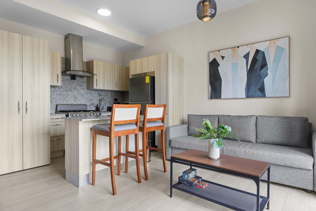 Disfruta una experiencia sofisticada y moderna con jardín privado, ubicada en el exclusivo residencial Single One. Ideal para parejas y viajeros de negocios que buscan confort, privacidad y una excelente ubicación. A solo 15 minutos del Aeropuerto Internacional de Punta Cana, y a 1 km de centros comerciales, tiendas, cine, restaurantes y la playa a 15 minutos. El residencial ofrece amenidades premium como gimnasio, cancha de pádel, restaurante y rooftop con estilo único total.