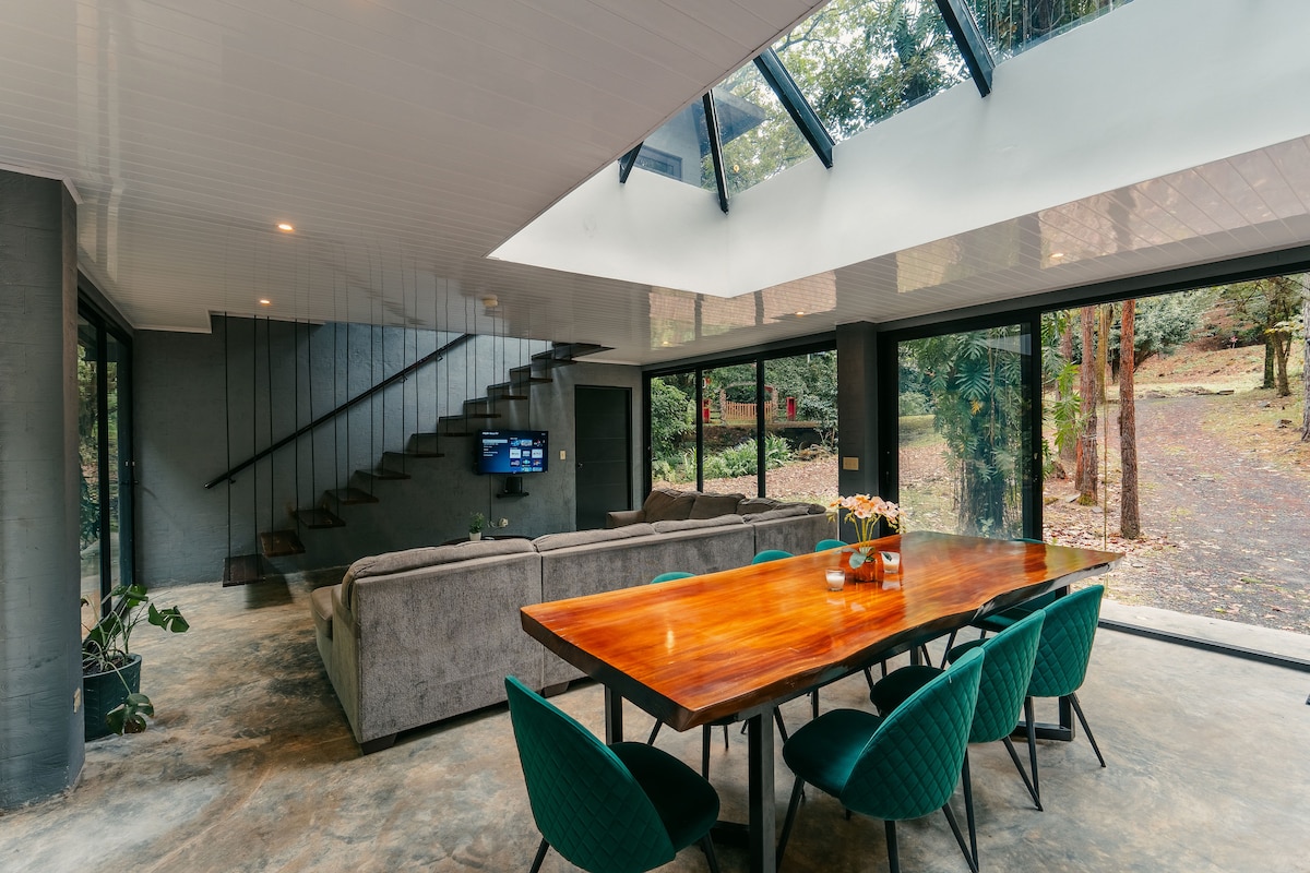 Relaxation is guaranteed in this one-of-a-kind glass house nestled in the lush mountains of Altos del María. Surrounded by nature and designed with floor-to-ceiling glass walls on all sides— as if you’re living inside a crystal ball. With no direct neighbors, panoramic forest views, it is perfect for a family getaway, a quiet reset, or an extended stay. The home offers light-filled interiors during the day and unforgettable stargazing nights from the rooftop.