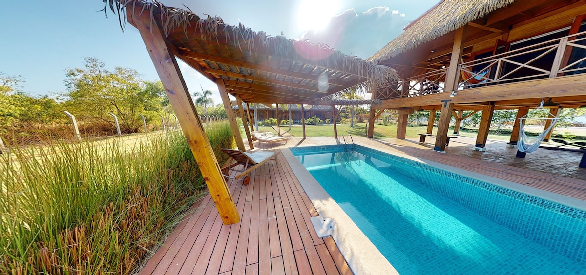 Este acogedor alojamiento es ideal para grupo familiar, ubicado frente al mar, cuenta con piscina con área bajo sombra ideal para niños o personas que no desean mucho sol. También cuenta con parrilla tipo Argentina, bohío con hamacas y bar, muchas áreas verdes que deleitar mientras disfrutas de la tranquilidad y sonido de las olas. Ideal si buscas una casa completa donde puedes compartir momentos amenos en familia, o si simplemente deseas descansar y leer un libro o dos en la hamaca.