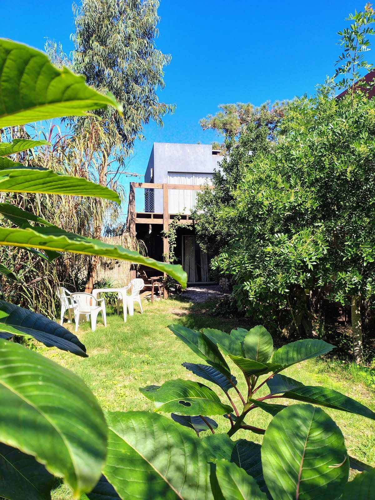 La tranquilidad del bosque a minutos del mar. Rustica y calida casa rodeada de naturaleza, capacidad 5/6 personas. La casa se distribuye en dos plantas, planta inferior living, cocina con barra integrada, dormitorio cama king, baño.Planta superior, amplio dormitorio con balcon con tres camas single y un puff sofa cama de plaza y media. PETFRIENDLY. COMODIDADES Wifi.Directv, tv led 32, cocina completa, pequeños electrod, lavadora, ventiladores, amplio fondo arbolado, sillas de playa, toallas.