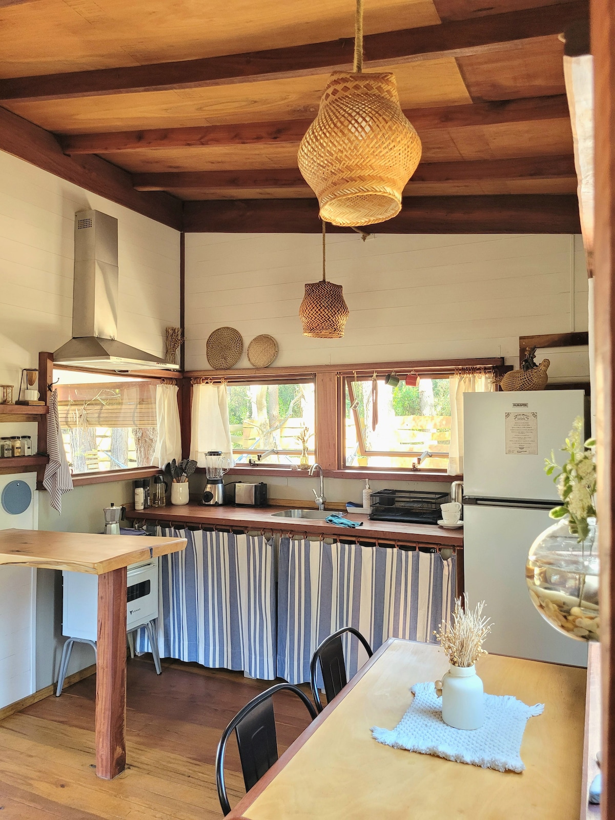 Nuestra Cabaña de estilo A-Frame fue creada con un propósito especial: ser un refugio acogedor en medio del bosque, donde puedan nacer los recuerdos más bellos Entre una naturaleza salvaje y una playa paradisíaca, la cabaña de madera y vidrio inspira calma, admiración y conexión Tu refugio de paz, tu hogar lejos de casa, un lugar para vivir momentos únicos que permanecerán contigo para siempre. Disfruta cada instante: la naturaleza que la rodea, los detalles de la cabaña y el silencio que cura