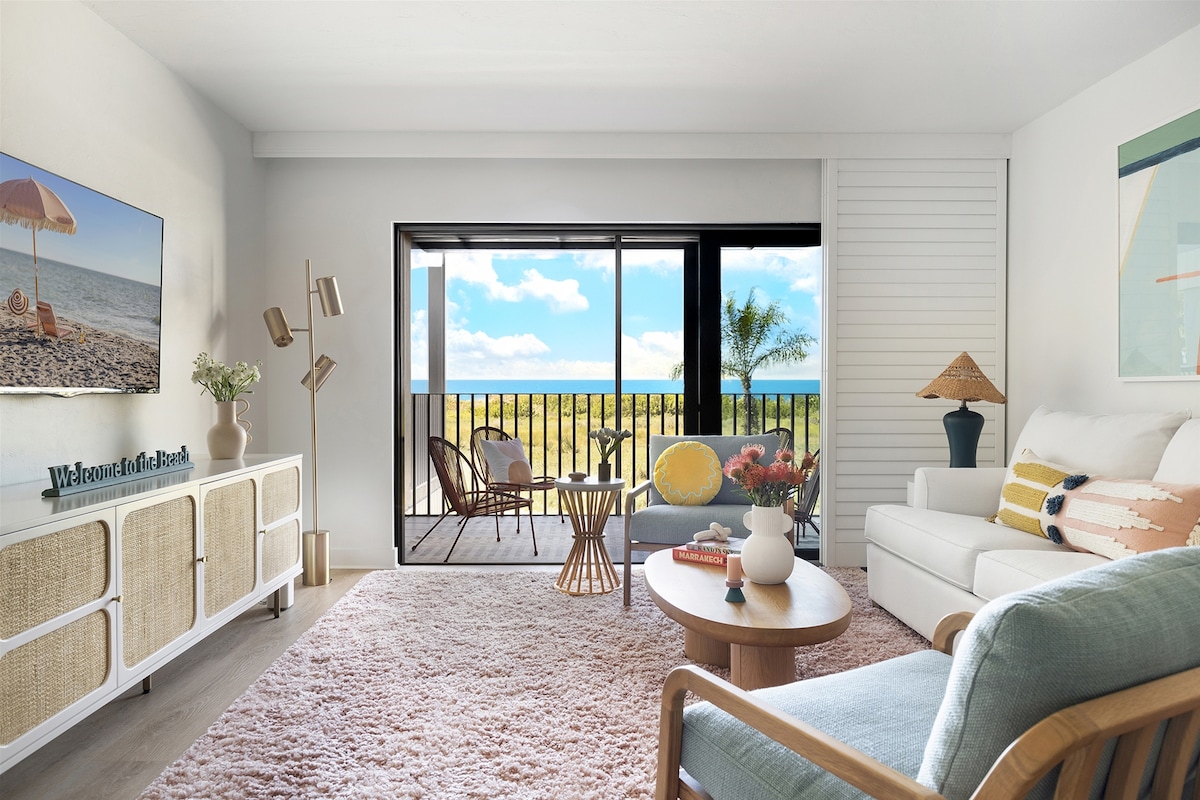 Vistas al mar y al golfo en Estero Beach & Tennis Club 206C ¡Despiértate con vistas despejadas al golfo en este apartamento de 5 estrellas en Fort Myers Beach! Disfruta de un check-in anticipado, sin tareas de check-out y todas las comodidades, desde una cama tamaño king GhostBed, cocina completa con lavavajillas, WiFi gratuito de alta velocidad, piscina climatizada, canchas de tenis/pickleball, parrillas para barbacoa, estacionamiento gratuito y equipo de playa surtido. A pocos pasos de la arena con puestas de sol que nunca olvidarás.
