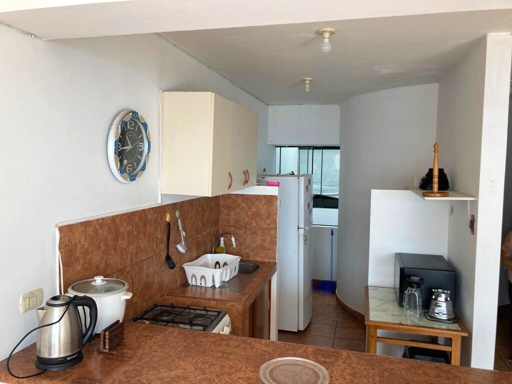 Miniapartamento tipo loft , con vista al mar. Perfecto para pasar unos dias inolvidables en pareja. Cuenta con cama king, mueble cama, tv smart, wifi, cocina a gas, menaje, sala, mini comedor, baño con terma agua caliente, lavadora. Además, podrás aprovechar unas noches fabulosas escuchando el sonido del mar y disfrutando de una hermosa vista. La playa es pequeña, casi privada. La piscina es un area común de la casa, habilitada de 10 am a 6pm. NO BRINDO TOALLAS NI ARTICULOS DE ASEO PERSONAL.