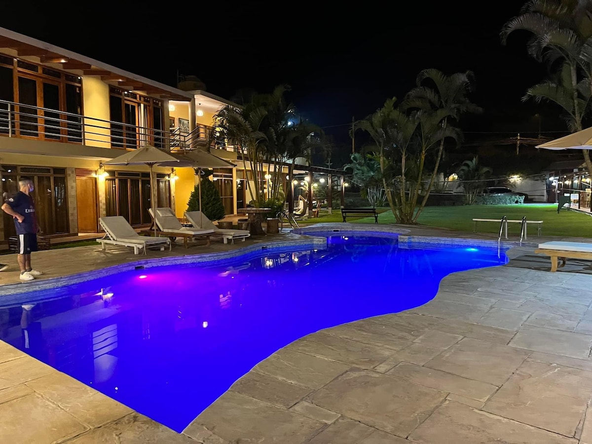 Villa Banana es un alojamiento campestre donde puedes escapar del bullicio y contaminación de la ciudad. Duplex campestre; en el 1er nivel una habitación principal con cama de 2Pz, baño completo, kitchenette, salita con chimenea, terraza con comedor y parrilla, en el 2do nivel una habitación con 4 camas de 1 y 1/2pz cada una, dos de ellas elevadas y una terraza con columpio y vista al bello jardín de Villa Banana. Adicionales: baños y duchas exteriores. La piscina es de uso privado.