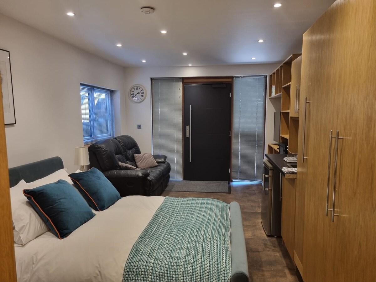 Anexo independiente que admite mascotas con jacuzzi disponible en Denmead, Hampshire. Cruza la carretera para dar un paseo por el bosque de Bere o pasea por Denmead para elegir entre varios pubs. Ve al club de golf Furzeley, que está al lado, para jugar al golf o a la pesca, que está a la vuelta de la esquina, monta a caballo para dar un paseo por South Downs o súbete al coche y visita el astillero histórico de Portsmouth o Goodwood. 1 dormitorio tamaño king (se puede convertir en dos camas individuales). Netflix y banda ancha.