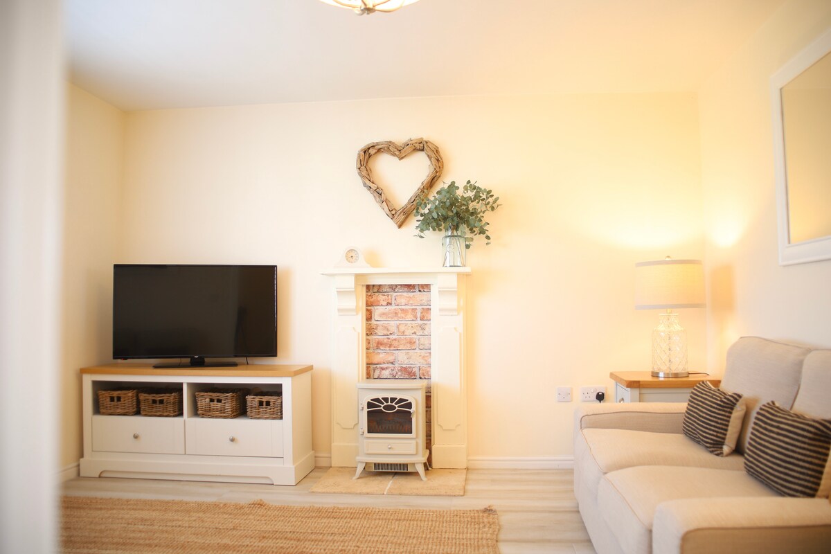Casa privada cwtch/cubby de 1 dormitorio. Se admiten mascotas. Ideal para un retiro tranquilo de fin de semana y una buena base para explorar la hermosa costa, retrocediendo a las dunas de arena y junto al sendero costero del Milenio. El dormitorio, el comedor y la cocina pequeña forman una habitación con un pequeño baño separado. TV e internet. El sofá pequeño se puede convertir en una cama. Mesa de comedor con 2 sillas. La cocina pequeña tiene microondas, hervidor, tostadora, nevera y fregadero. POR FAVOR, TEN EN CUENTA: NO HAY HORNO. Calefacción de quemador de leña y calefactor eléctrico.
