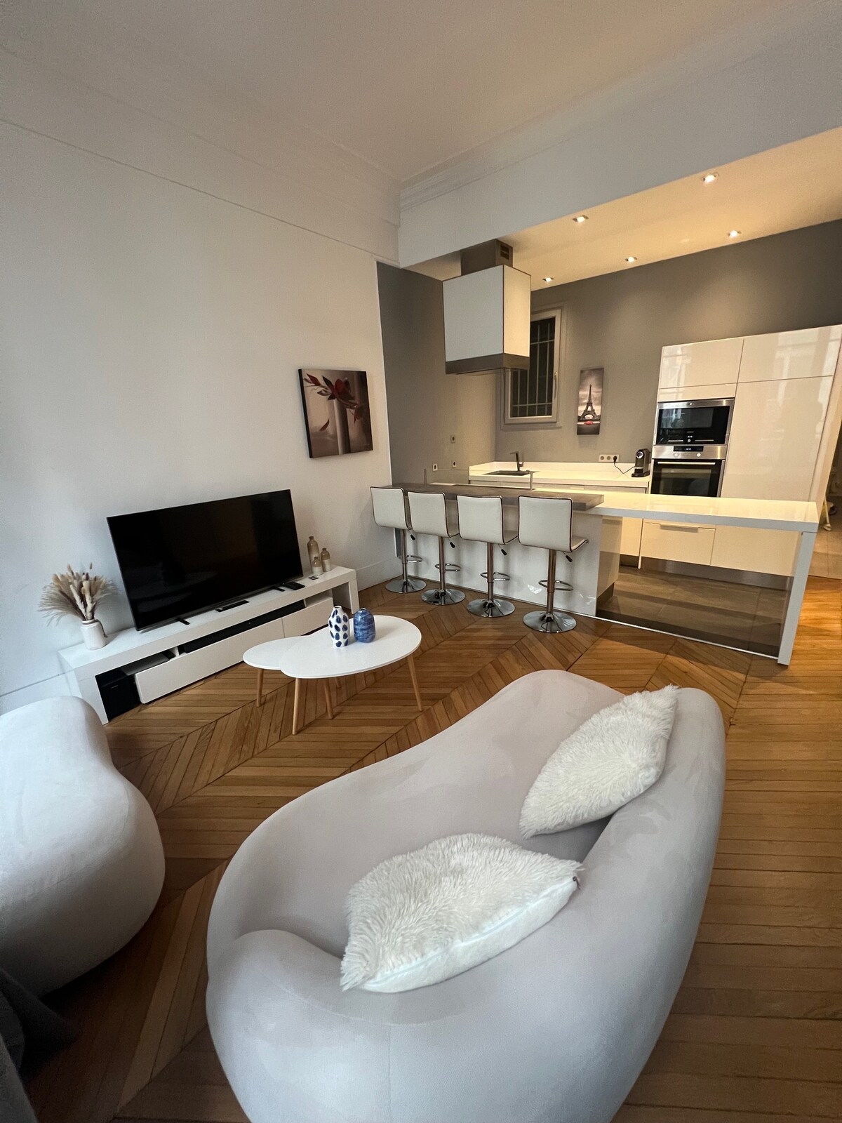 Mi alojamiento está justo en la calle Rue Saint-Honore, frente a la nueva tienda de Saint Laurent. Puedes ir a correr por la mañana en el Jardin des Tuileries, que está a un tiro de piedra, al igual que el Louvre, el Palais Royal y la Place Vendôme. Es acogedor, luminoso, bien terminado con roble macizo, mármol blanco, ropa de cama de Merci, azulejos Bisazza, vajilla iitala, etc. Es bueno para aventureros solitarios, viajeros de negocios y parejas. Ten en cuenta que sigo los nuevos protocolos de limpieza y desinfección avanzada de Airbnb.