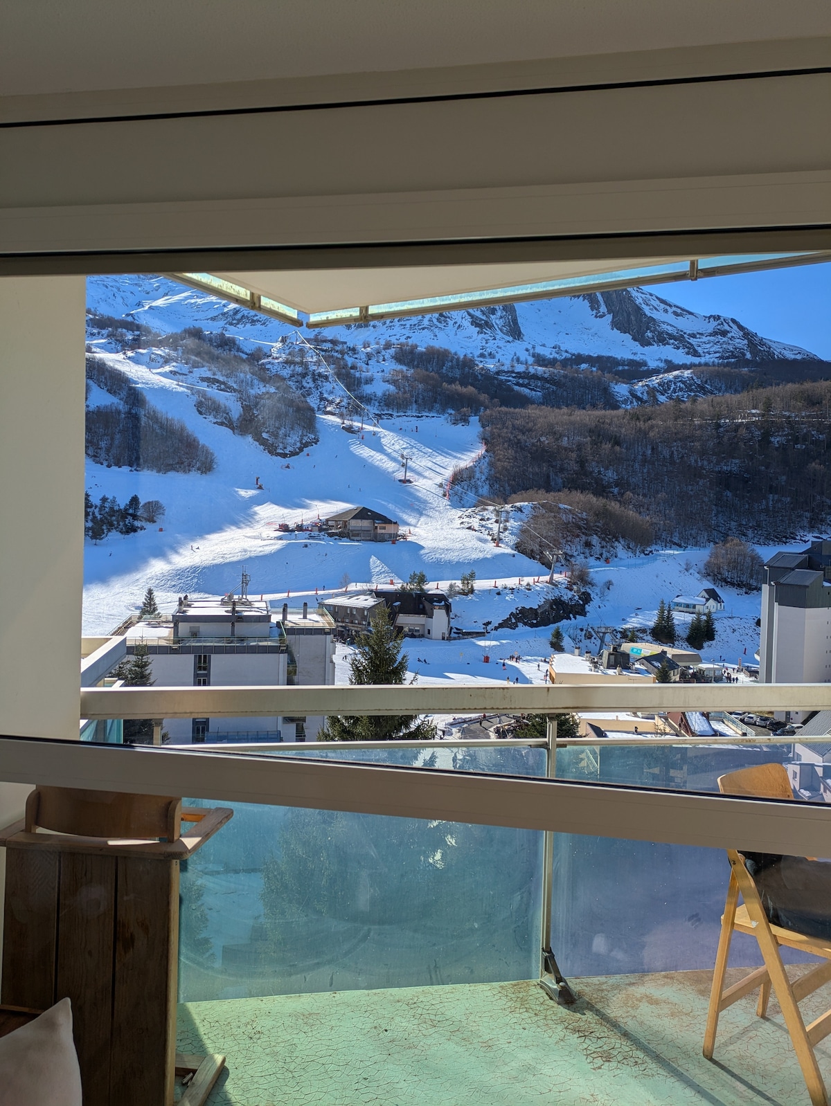 Gourette al pie de las pistas frente a la taquilla con guardaesquís. Balcón orientado al sur con vistas a las montañas y a las pistas. El telesilla del Bézou se encuentra en las inmediaciones. El apartamento está situado en el 4.º piso. Consta de una cocina equipada abierta a la sala de estar con un sofá cama de 160 cm. Una zona de dormitorio con dos literas con un televisor adicional. Un cuarto de baño equipado con dos lavabos, un secador de toallas y una ducha con grifo termostático.