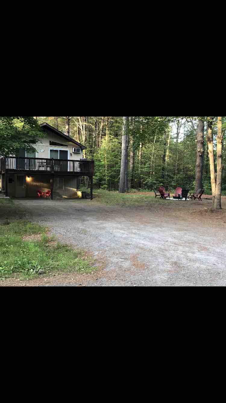 Centrally-located, private capecod home in the woods of Lake George. Features a 3- Season's porch, downstairs game room, upstairs loft with a two piece balcony. Outdoor wrap-around around porch with BBQ grill, fire pit with adridonack chairs. The village of Lake George is just down the road. Close to Gurney Lake Park and Recreation Center, shopping outlets, theme parks, hiking trails and West Mountain Skiing, Hudson River Tubing.