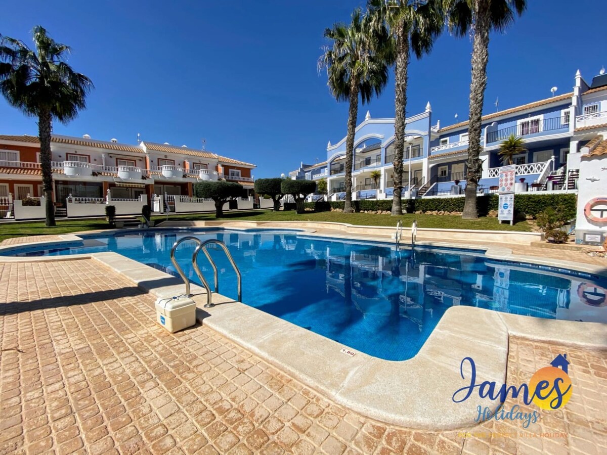 Holiday home for maximum of 4 people A nice 2 bedroom townhouse with a lovely communal swimming pool and garden area in a quiet location. Ideally situated just 4 minute walk to the local amenities, shops, bars and restaurants. Nicely furnished and very well equipped with air conditioning and carpark near the property. ABOUT CH MAGDALENA PUEBLO BRAVO (CIUDAD QUESADA) Tourist License Number: VT-503358-A A nice 2 bedroom townhouse with a lovely communal swimming pool and garden area in a quiet location. Ideally situated just 4 minute walk to the local amenities, shops, bars and restaurants. Nicely furnished and very well equipped with air conditioning and carpark near the property. When you enter the property you’ll find an outdoor dining table for four with pergola to enjoy your alfresco gatherings. Going inside to the living room you’ll find a comfortable 4-seat sofa with coffee table and Smart TV. The table for four in the dining area. You’ll find the kitchen next to the dining area separated with a nice breakfast counter. The kitchen is fully equipped with oven, hob, microwave, dishwasher, fridge and washing machine. At the back of the kitchen you’ll find the patio with the table for four and from the patio you have access to the solarium terrace where you can enjoy the views or sun in one the sun loungers. The solarium is sealed with artificial grass, you will also find here gazebo for shade when required. Both bedrooms are accessible from the living room and have a built-in-wardrobes. All rooms have ceiling fan with lights with remote control. One bedroom and living room have air conditioning. You’ll find the bathroom with a shower and toilet as well. There is a lovely communal swimming pool and garden area situated just 30 meters from the house, or the beautiful blue flag beaches of Guardamar are 8 minutes by car or several golf courses in Quesada or within 20 minutes by car. The property will be supplied with linen for each bed and 2 towels per guest. Pets may be allowed upon request depending on the type, size and number. Please note that additional charges may be applicable. CH MAGDALENA PUEBLO BRAVO (CIUDAD QUESADA) FEATURES - 1 x Double Size Bed + 2 Single Beds - 1 x 4-Seater Sofa - 1 x Smart TV - Fully fitted kitchen - 1 x Dining Table for four - 2 x Outdoor Table for four - 2 x Air Conditioning in Living Room & Main Bedroom - Bathroom with Walk-In-Shower - 2 x Sun Loungers - Washing machine, Drying Facilities & Iron - Complimentary Internet Wifi ABOUT CIUDAD QUESADA Ciudad Quesada is located on the Costa Blanca South just 8 kilometers north from the popular holiday destinations of Torrevieja and Guardamar del Segura. Nearby towns include Rojales and San Fulgencio. Ciudad Quesada is an extremely popular choice for holiday makers who are looking for a base and tranquility for their ideal break. It's lively the whole year round, offering plenty of amenities including it's own unique attractions La Marquesa Golf Course and Aquapark Rojales along with shops, bars and many restaurants. The history behind Ciudad Quesada is intriguing, because it really didn’t exist until the early 1970’s when a Spanish entrepreneur called Justo Quesada Samper decided to start his own town. The urbanisation grew and grew, and today it is well renowned and accepted as a real Spanish town. LOCAL TRANSPORT Getting to Ciudad Quesada from the nearest airports is straightforward, please enquire about our airport transfers to and from Ciudad Quesada for competitive prices for you. There are bus routes and taxis available on the main street in Ciudad Quesada. From Rojales you can get directly to Torrevieja, Guardamar, Alicante, Orihuela, Benejuzar, La Mata, La Marina, the Hospital, etc. CLOSE TO CIUDAD QUESADA Many award-winning sandy blue flag beaches are just a few minutes drive away at Guardamar del Segura. The urbanisation is well-designed with good landscaped features. The views are good, inland you have mountains, the countryside surrounding Ciudad Quesada includes orange groves and the salt lakes of Torrevieja.