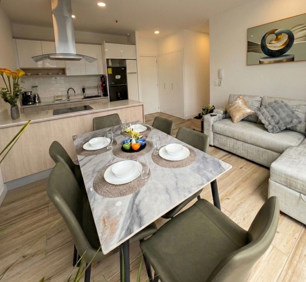 Descubre la comodidad y conveniencia de hospedarte en este moderno apartamento ubicado en el corazón de Quito. A solo pasos del emblemático parque La Carolina, estarás rodeado de una zona con restaurantes, centros comerciales, y una estación del metro a 200 metros, lo que garantiza fácil acceso a toda la ciudad. Perfecto para parejas, familias de hasta 4 personas, profesionales y viajeros de negocios, este espacio ofrece un ambiente acogedor y funcional para todo tipo de estadías.