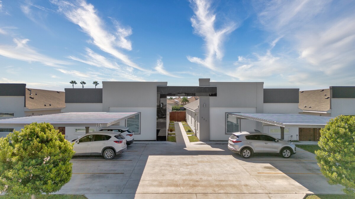 Entra en un apartamento acogedor y espacioso con todo lo que puedas necesitar a poca distancia a pie o en coche. ¡Disfruta del patio trasero zen con un ambiente nocturno perfecto y asientos para 6 personas! A pocos pasos, justo fuera de la comunidad cerrada, hay una plaza comercial con una magnífica variedad de restaurantes y otros negocios. En un radio de 1 a 2 millas, tendrás hospitales, opciones de entretenimiento, farmacia, gimnasios, restaurantes, supermercados, panaderías, etc. El centro comercial Plaza Mall y el aeropuerto de McAllen están a unas tres millas de tu apartamento.