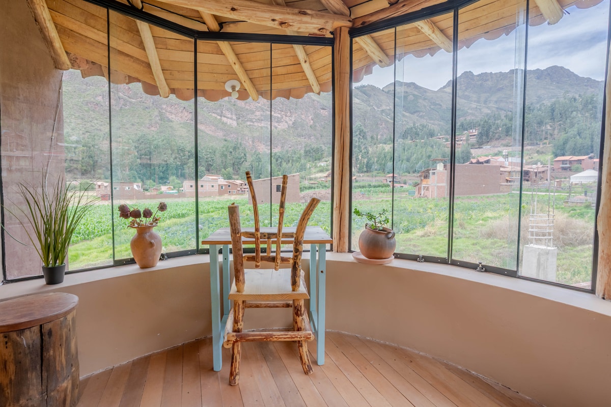 Disfruta de este lujoso y acogedor apartamento privado, con una hermosa vista desde la habitación, relájate en tu propio balcón, también con baño privado y jacuzzi propio, la cocina es moderna y súper cómoda, la sala de estar y el comedor están totalmente amueblados , la cocina está totalmente equipada con todo lo necesario para tu estancia, conéctate sin problemas con el internet de fibra óptica de alta velocidad. ubicado en uno de los lugares más solicitados del valle sagrado, Pisac "La Rinconada".