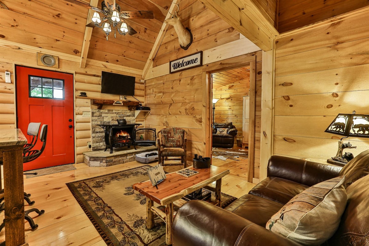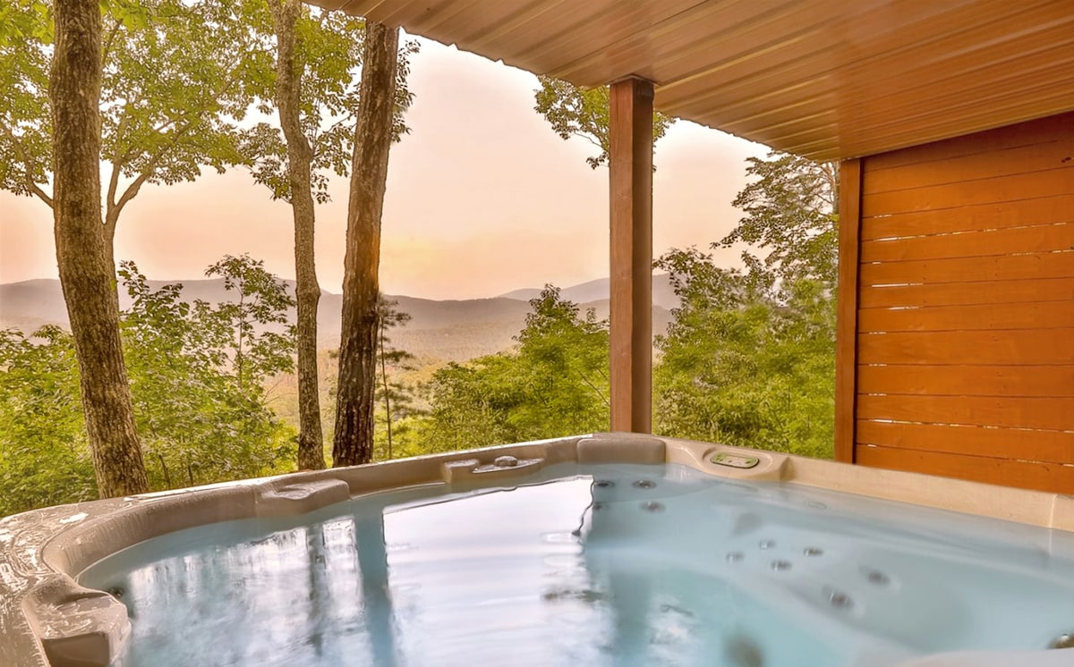 Nuestra Cabaña: 'Oso errante' está ubicado en 3 acres de propiedad, entre los hermosos bosques de Double Knob Mountain. Perfecto para aquellos que buscan vistas al atardecer y una mezcla armoniosa de naturaleza, con las comodidades de casa. Este romántico refugio lo invita a contemplar las estrellas desde la bañera de hidromasaje en la terraza al aire libre o a relajarse junto al calor del fuego en nuestra sala de estar recién renovada. Para aquellos interesados en vagar, estamos ubicados a menos de 30 minutos del centro de Ellijay y Blue Ridge.