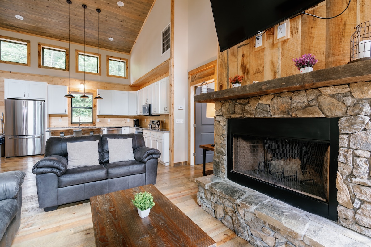 Disfruta de vistas al lago y a la montaña en este oasis actualizado entre los árboles. Tanto si buscas una aventura al aire libre como una escapada rejuvenecedora, ¡lo tenemos todo! Situado en un lago de cinco acres, disfruta del muelle privado y del uso de nuestras dos tablas de remo y canoa. Después de un día de senderismo, desconecta en el jacuzzi y la sauna. Hay mucho espacio para reunirse tanto en el interior como en el exterior. Esperamos que disfrutes de todas las comodidades modernas mientras te reconectas con la naturaleza. ¡A solo 12 minutos del centro de Ellijay!