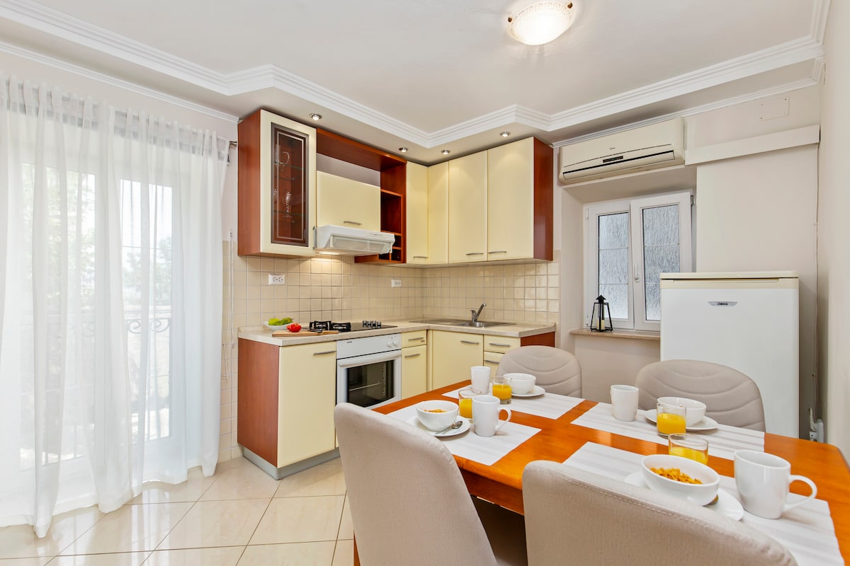El apartamento se encuentra a 100 metros del centro de la ciudad de Krk (isla de Krk), a 150 metros del mar y a 500 metros de la playa. El alojamiento está equipado con: televisión, calefacción, aire acondicionado, internet, cuna (previo acuerdo). Todo incluido en el precio. Alojamiento apto para mascotas, solo con acuerdo previo (con cargo adicional).