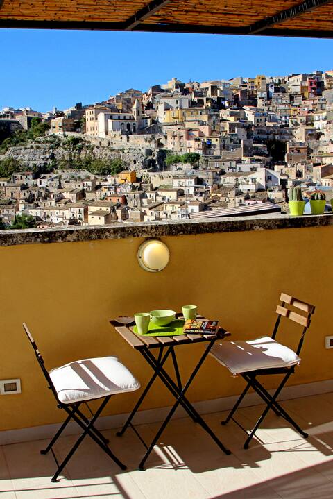 A 'naca es una antigua casa reformada con un patio lleno de plantas y vistas a Ibla. Todo el apartamento en la planta baja es solo para nuestros huéspedes, hay una entrada privada, una sala de estar con biblioteca, sofá y vista al patio, una cocina totalmente equipada, un baño privado, una habitación espaciosa con una cama doble y dos camas individuales y una hermosa habitación individual con vistas a Ibla. Los observadores de estrellas pueden dormir en la hamaca del patio y, si tienes suerte, escuchar las llamadas de los búhos.