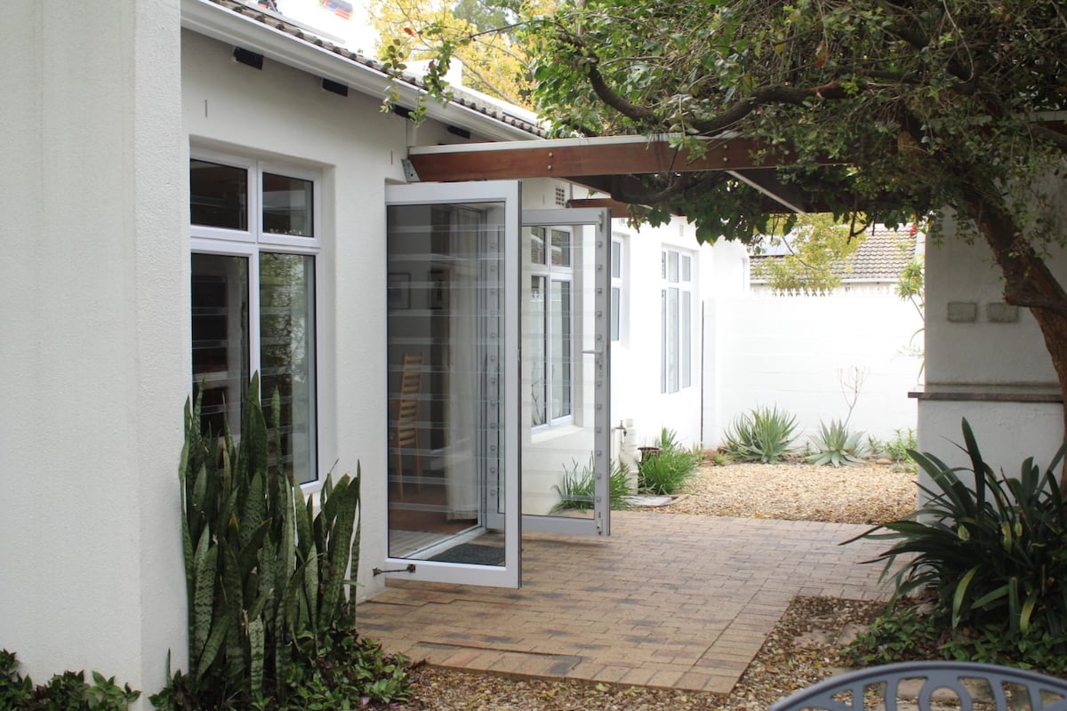 Auténtica vida de Stellenbosch, a poca distancia a pie del centro histórico de la ciudad. Amplio apartamento de dos plantas con jardín, cocina americana, salón, dormitorio, baño en suite, entrada privada y piscina. ¡No hay cortes de electricidad! La casa tiene energía solar y un sistema de baterías. Perfectamente ubicado en una hermosa calle bordeada de robles en el histórico Mostertsdrift con vistas al parque Jan Marais, a poca distancia a pie de la Universidad, el Centro Deportivo Coetzenburg y cerca de rutas de senderismo y ciclismo.