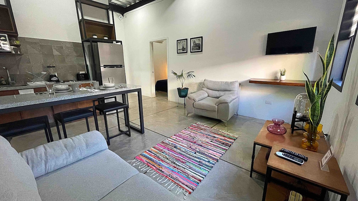 Este departamento ejecutivo tipo estudio está diseñado para tener una estancia tranquila y confortable, equipado con todo lo necesario para la comodidad del huésped. Tiene un estilo único y pensado para que cada rincón lo haga sentir cómodo y disfrute de la experiencia. Cuenta con un área de trabajo cómoda, excelente internet. La ubicación perfecta para cualquier actividad médica, trámites, paseo, etc. Los esperamos!