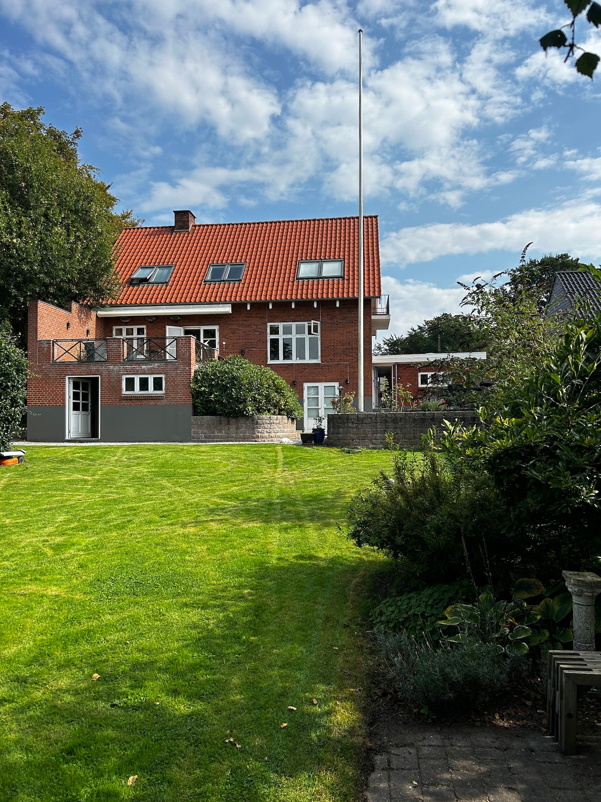 Nuestro departamento está en un pueblo pequeño y tranquilo en el campo cerca de Randers. El apartamento tiene su propia entrada, una caja de llaves para facilitar el registro de entrada, un cargador de coches eléctricos y acceso gratuito a una lavadora. En el interior hay vestíbulo de entrada, pequeño baño con ducha, 2 dormitorios, cocina abierta totalmente equipada y sala de estar con cómodo sofá cama de 140 cm. Nuestro jardín tiene un divertido parque infantil para los más pequeños y un acogedor invernadero que todos pueden disfrutar. Siempre te proporcionamos una casa limpia, toallas y ropa de cama. Bienvenido