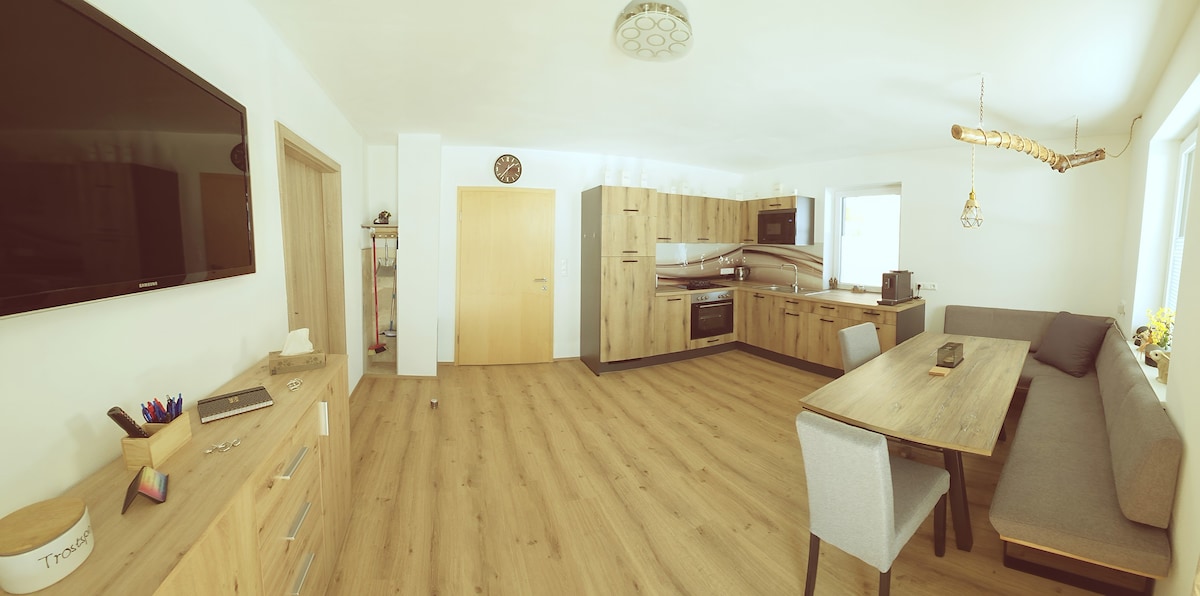 Nuestro apartamento está construido en 2016 y nos encantó diseñar las habitaciones, el equipamiento y la decoración. Se encuentra en la planta baja de nuestra casa y tiene una entrada independiente, una habitación adicional para esquís/botas de montaña, una entrada adicional y una conexión directa con la terraza y el jardín. El apartamento está totalmente equipado y la vista a las hermosas montañas que te rodean se puede disfrutar sentado en el sofá :) Solo tienes que probar y sentir la sensación "hogareña" en nuestra casa...