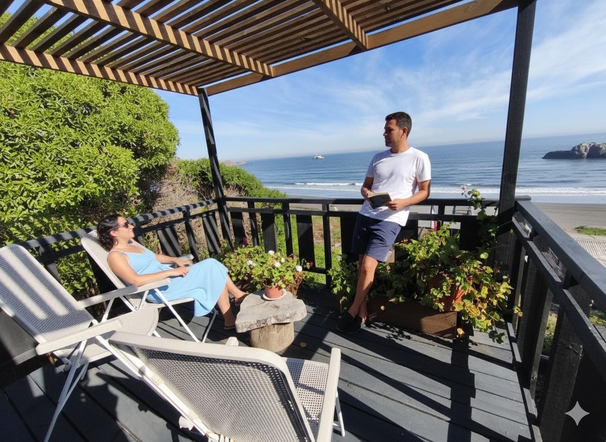 Relájate en esta escapada única y tranquila. disfruta el sonido de olas y la experiencia de vivir esta casa en primera linea con espectacular pìscina infinita y otra temperada sin preocuparte de la leña. es ideal para celebrar momentos especiales en pareja con la posibilidad de recibir a 2 mas en una segunda pieza. ideal mayores de 8, habituados a piscina sin barandas cocina mirando el mar y disfruta de los atardeceres en la inmensa terraza o el quincho exterior.