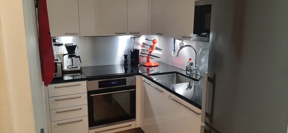 Este elegante apartamento en la planta superior con balcón francés es perfecto para ti, si deseas un lugar tranquilo y cómodo para alojarte cerca del centro de la ciudad y con fácil acceso a la estación de tren y al aeropuerto. Al estar en el último piso y desde el gran ventanal, puedes ver fácilmente el hipnótico tráfico de trenes y la vida de la ciudad, mientras que al mismo tiempo las gruesas ventanas bloquean todos los ruidos de la ciudad. Café y té de cortesía, champú y gel de ducha de alta calidad hacen que tu visita sea fácil con un poco de lujo.