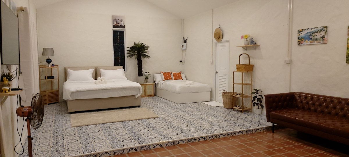 Casa unifamiliar decorada en tonos blancos, muy agradable a la vista. Jardín privado en frente de la casa 1 dormitorio 1 salón Baño Piscina privada en la parte trasera de la casa Bañera al aire libre Baño exterior - Minibar gratuito - Ducha - Toalla de baño/toalla de pelo/albornoz ¿Para quién está❤ diseñada esta casa?❤ Ideal para parejas o familias que buscan un lugar privado para relajarse. Tiene un hermoso rincón para tomar fotos, una sala de estar para sentarse y charlar, un jardín verde y agradable y un área alrededor de la piscina diseñada para ser privada.