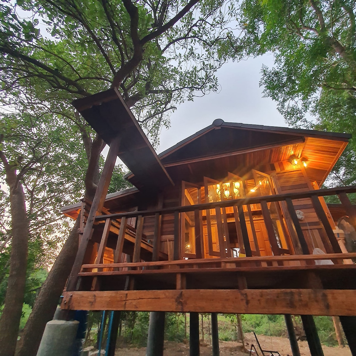 La casa está rodeada de muchos árboles. La casa está diseñada para permitir que los residentes pasen tiempo al aire libre con la naturaleza. Tiene capacidad para 4 personas. Adecuado para familias y grupos de amigos para encontrar una zona de barbacoa al aire libre.