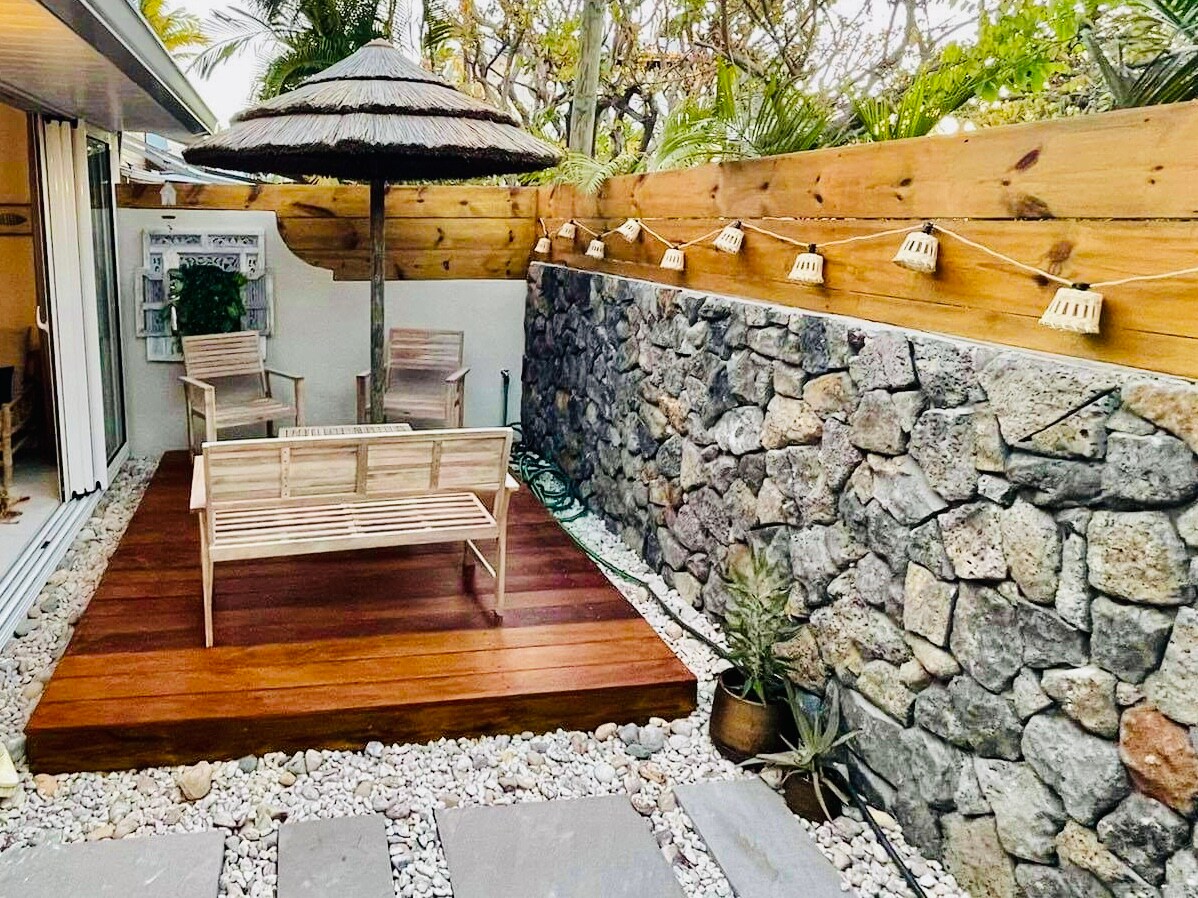 Planta baja independiente de una casilla sobre pilotes, situada en un cocotero. Previsto para 2 personas, está compuesto por: - un dormitorio, un baño al aire libre (agua caliente) y un aseo, un espacio abierto al exterior con zona de cocina equipada y un jardín con jacuzzi y piscina. Situado a orillas del mar en la bahía de Saint Paul en una reserva natural excepcional (cocotero y estanque), cerca del comercio del centro de la ciudad, del mercado de Saint Paul y de la carretera de los Tamarindos. Lugar tranquilo.
