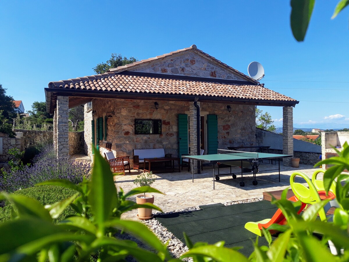 La casa Mrđina es una casa de piedra ubicada en Kali, en la isla de Ugljan. Se encuentra en la cima de la colina y ofrece una vista perfecta de Kornati, Dugi Otok, Iž. ¡La casa tiene energía solar y te proporciona un consumo normal de electricidad! La luz es excelente dentro y fuera de la casa. Disfrutarás en el hermoso ambiente natural. ¡La casa es perfecta para personas que desean aventura y exploran la belleza natural! ¡Esperamos tu llegada ! ¡Nos vemos! Casa Mrđina