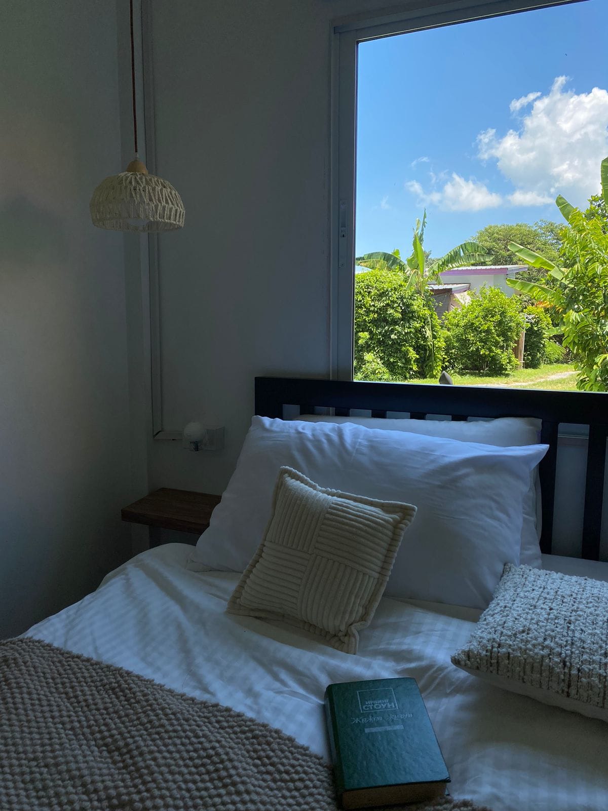 Mi casa de campo está en lo alto de una suave colina en una residencia local, a 4 km de la hermosa playa Naiharn. Tiene dos pisos, 60m², dormitorio en la planta superior con grandes ventanas del piso al techo y un balcón abierto frente a la bahía y el patio, cama de tamaño amable, escritorio y sillas, aire acondicionado, ventilador de techo, suelo de madera, muebles de estilo tailandés y un baño separado. Sala de estar en la planta baja con utensilios de cocina completos, vajilla, sofá y mesa de centro de madera. No hay ningún otro huésped durante tu alojamiento.