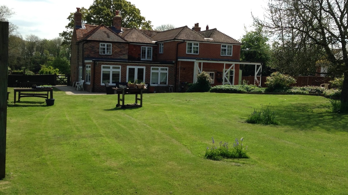 Suite de invitados en el ala de una cabaña enmarcada en roble. Situado en tierras de cultivo entre 2 pueblos pintorescos, Old Basing y Newnham . Encantador salón con estufa de leña Amplio jardín y terraza con porche cubierto y muebles Desayuno sencillo de bricolaje Entrada privada Cama tamaño king Una base ideal para explorar los jardines y las casas de campo de Hampshire. Práctico para Londres, Winchester, Farnham, Windsor, Highclere Tenga en cuenta la ubicación y el vehículo necesario: 35 minutos a pie del pueblo y las tiendas a más de 2,5 millas