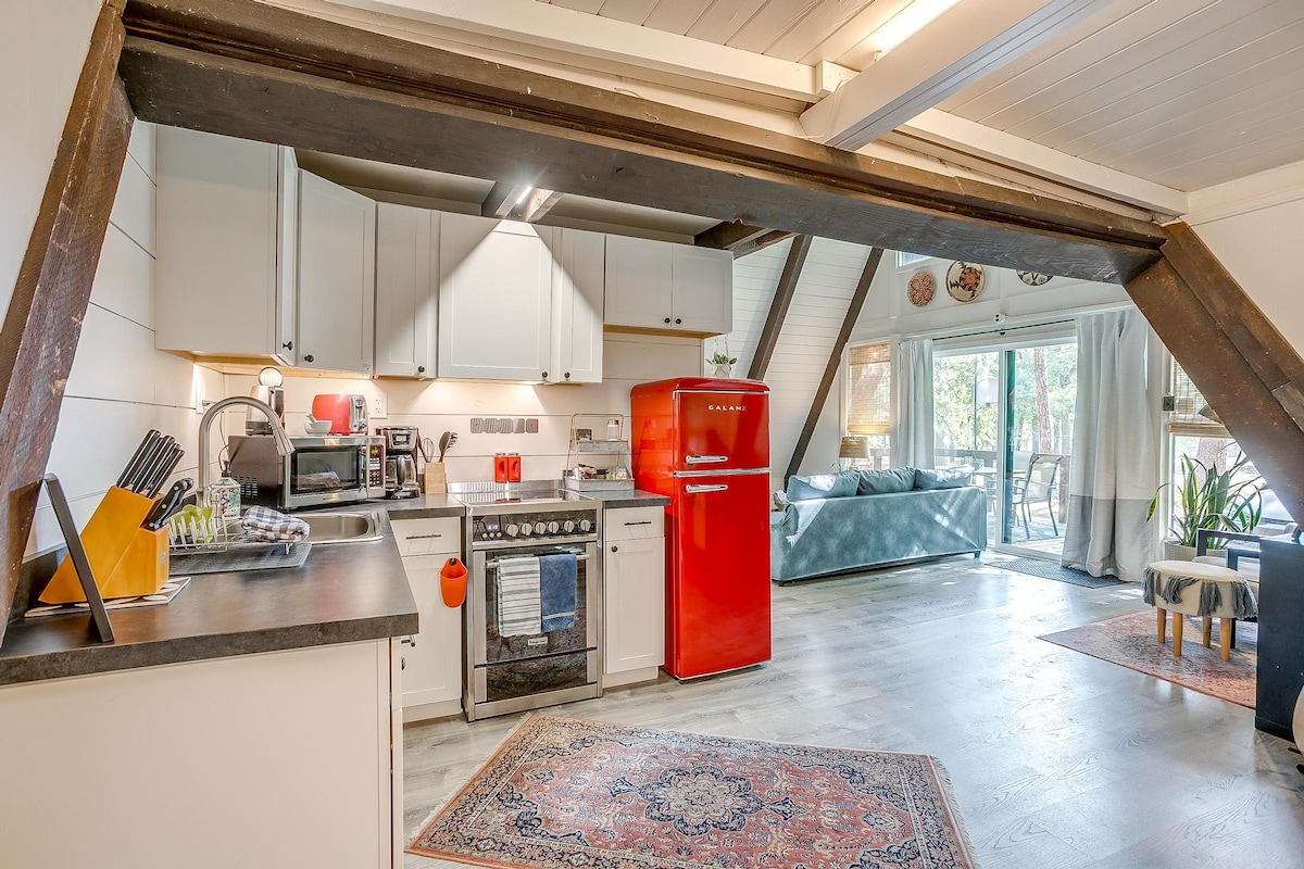 Escápate a esta acogedora cabaña frente al mar. El plano de piso abierto cuenta con un piso principal con una lujosa cama tamaño king, baño completo con bañera con patas, cocina para todas tus necesidades culinarias con ollas, sartenes y platos. Un cómodo sofá de cuero para descansar. Un loft en la parte superior con camas individuales ofrece dormir más para niños o huéspedes. Sal a disfrutar de las tranquilas vistas del estanque mientras te sumerges en tu jacuzzi privado bajo las estrellas, asa malvaviscos en el fogón o cena a la parrilla en la barbacoa de carbón.