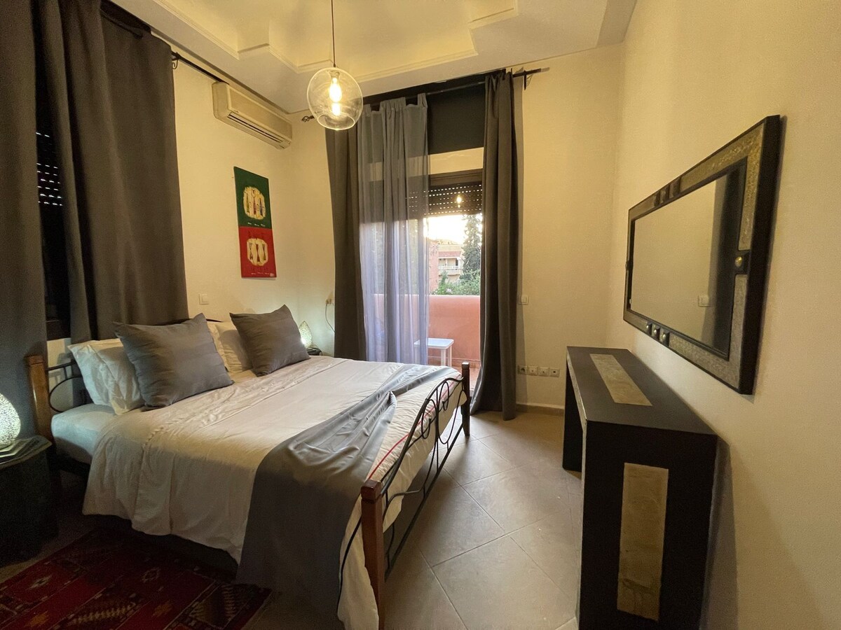 Votre appart est situé au 2ᵉ étage d’un riad dans la rue Riad Larousse, cet appartement offre deux chambres, une salle de bain, un salon et une cuisine équipée. Petit-déjeuner inclus. À quelques minutes de Jemaa el-Fna, des musées, restaurants et souks, il allie confort et authenticité. Idéal pour découvrir la médina de Marrakech, il offre calme, luminosité et un accès rapide aux principaux sites culturels et historiques de la ville. Vous profiter aussi d'une terrasse avec une vue sur la médina